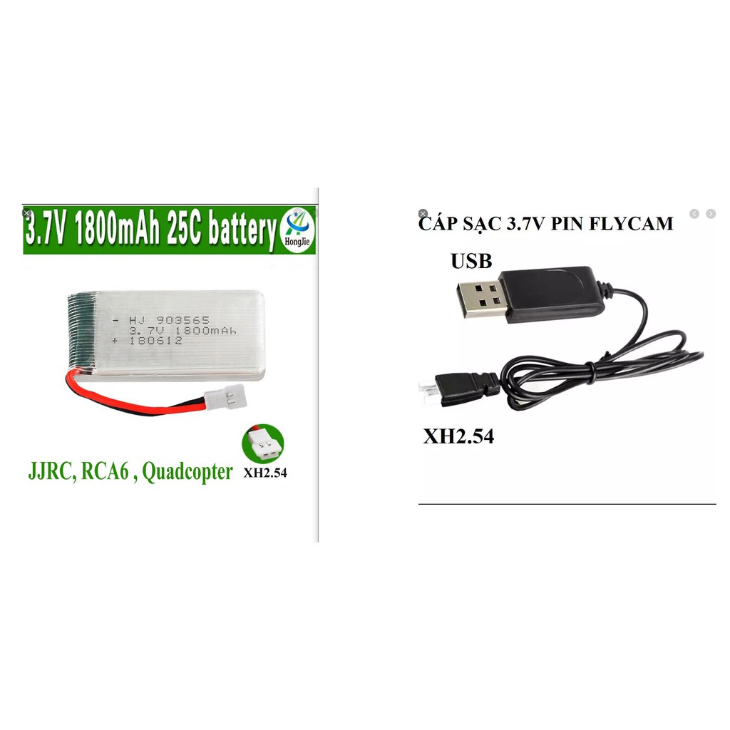 - Pin flycam lithium 3.7V 1800mAh. Đầu chuẩn gắn các chuẩn: XH2.54, JST, SM.