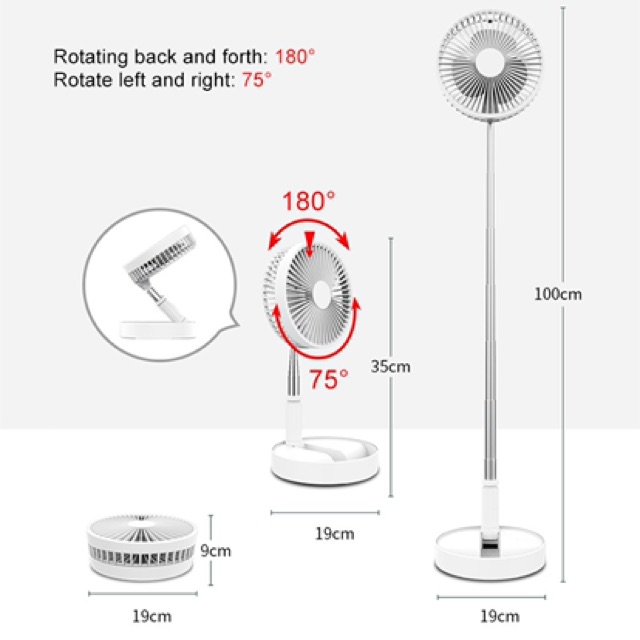 Quạt sạc tích điện đa năng pin 7200 mAh, gập , chỉnh tốc độ, độ cao .- Tiện mang theo, nhỏ gọn, kích thước gọn gàng 19.7 x 19.7 x 9.3 cm