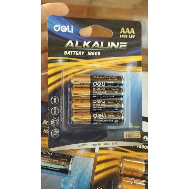 Pin kiềm Akaline AA , AAA Deli - vỉ 4 viênLoại pin : Pin tiểu Deli 18504 AAA 1.5V LR03