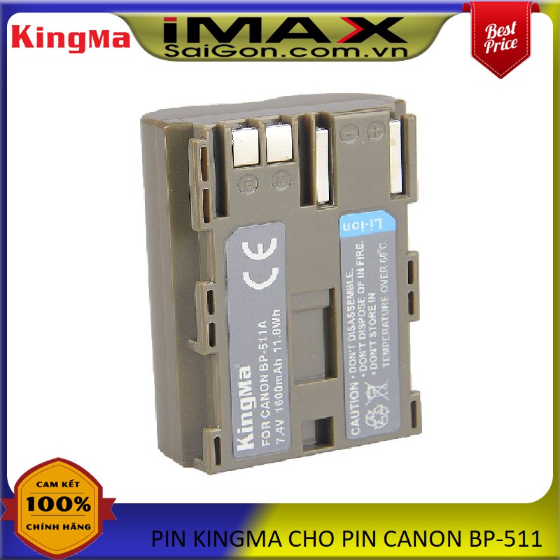 Pin sạc KingmaCanon BP-511A 1600mAhchính hãnglà dòng pin tiêu chuẩn đúng nguồn điện của hãng Canon.- Dung lượng cao1600mAh, đây là dung lượng thật.