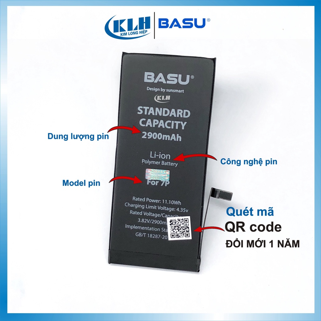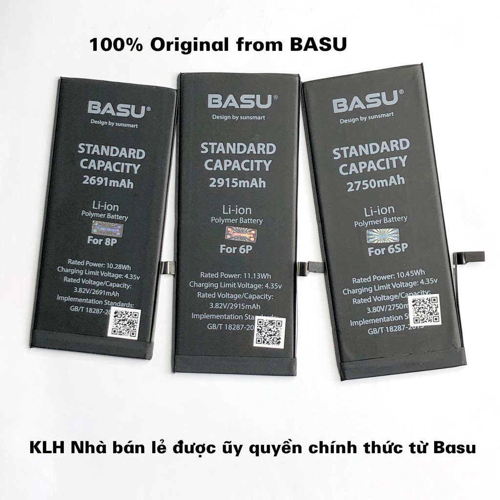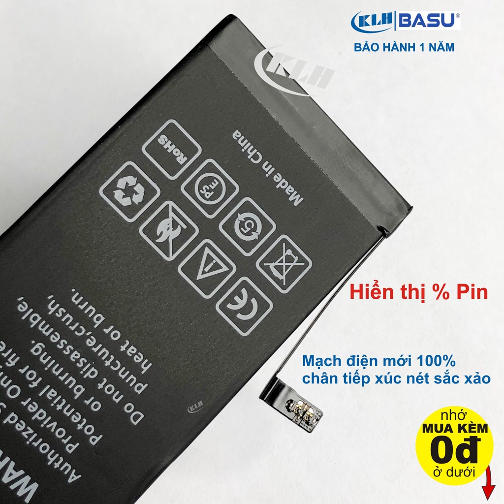 Pin lắp iPhone 5 5s 6 6s 6plus 6splus 7, 7plus, 8, 8plus, X chính hãng BASU dung lượng chuẩn như pin zin theo máy KLH