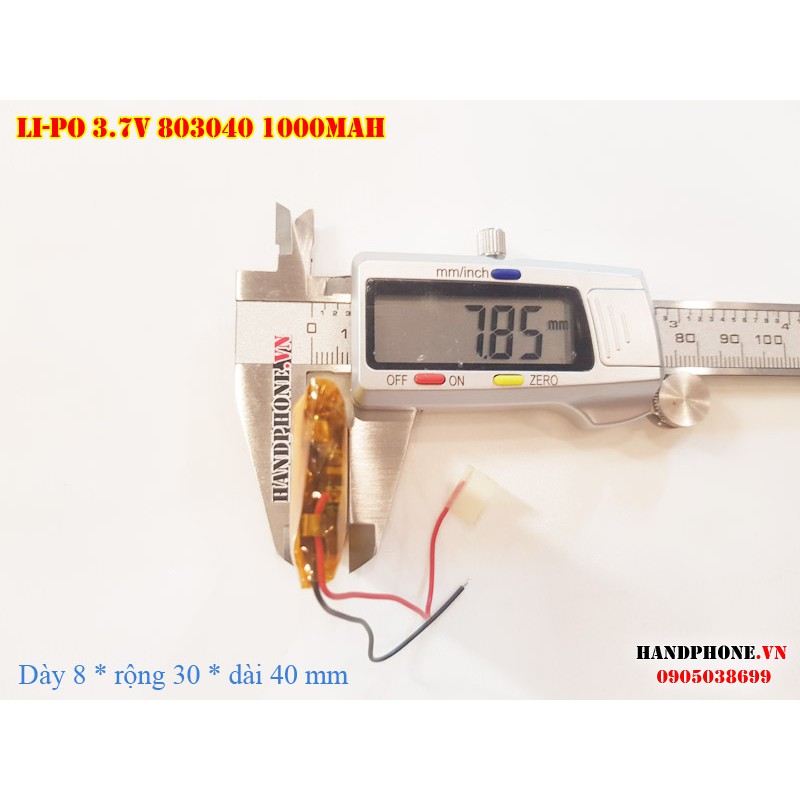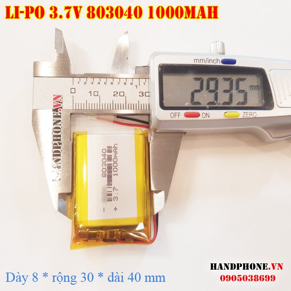 Điện Thoại & Phụ Kiện > Phụ kiện > Sạc dự phòng & Pin > Pin || Pin Li-Po 3.7V 1000mAh 803040 (Lithium Polymer) cho điện thoại, loa Bluetooth, định vị GPS, camera hành trình, máy Mp3Còn hàng