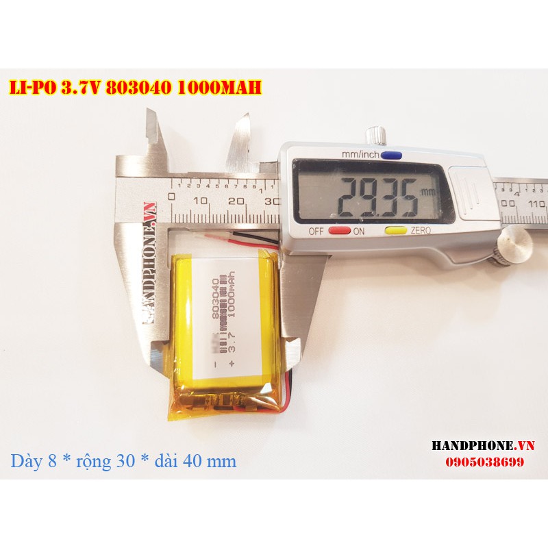 Pin Li-Po 3.7V 1000mAh 803040 (Lithium Polymer) cho điện thoại, loa Bluetooth, định vị GPS, camera hành trình, máy Mp3