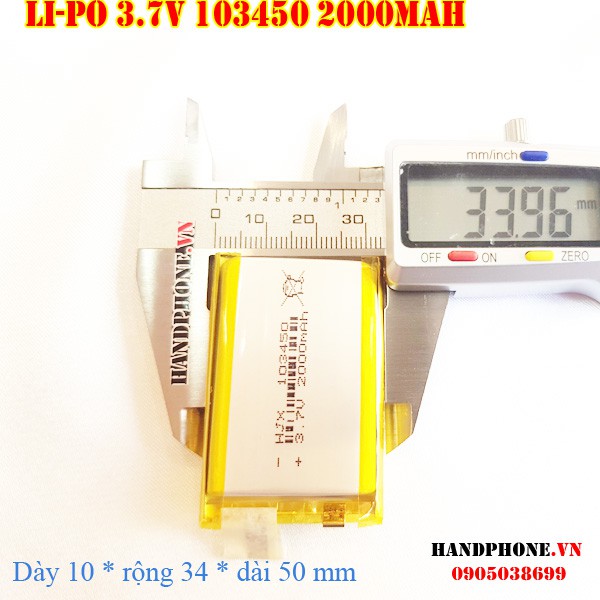 Pin Li-Po 3.7V 103450 103550 2000mAh (Lithium Polyme) cho điện thoại, Bộ đàm, Định vị GPS, Camera hành trình,cân điện tử