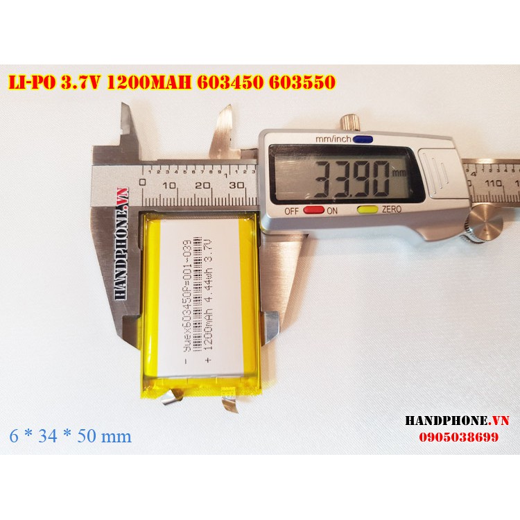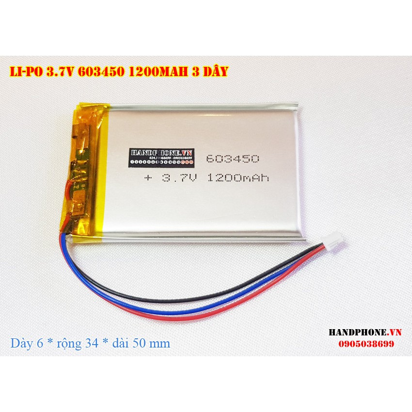 Pin Li-Po 3.7V 1200mAh 603450 603550 (Lithium Polyme) cho loa Bluetooth, Định vị GPS, Camera hành trình loại 2 dây,3 dây