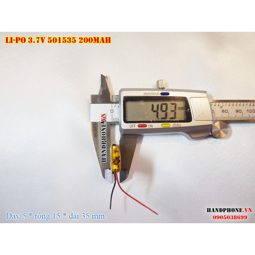 Pin Li-Po 3.7V 200mAh 501535 (Lithium Polyme) cho Tai nghe Bluetooth, Smartwatch, Máy nội soi, Cân điện tử, Camera