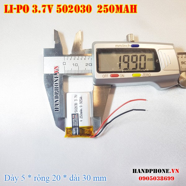 Pin Li-Po 3.7V 250mAh 502030 (Lithium Polymer) cho tai nghe Bluetooth, loa Bluetooth, định vị GPS, camera hành trình