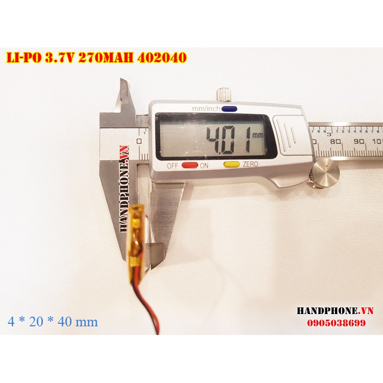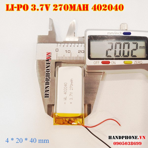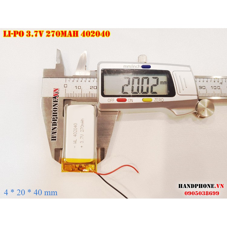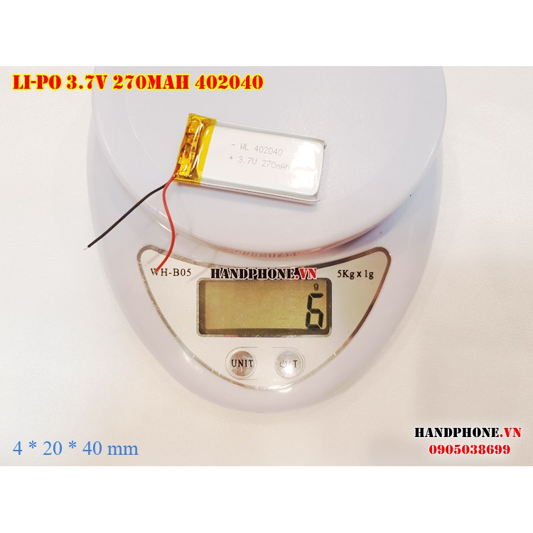 Nhà cửa & Đời sống > Dụng cụ & Thiết bị tiện ích > Dụng cụ > Dụng cụ đo lường || Pin Li-Po 3.7V 270mAh 402040 (Lithium Polymer) cho máy nội soi, định vị GPS, cân điện tử, máy ghi âm, camera hàng trìnhCòn hàng