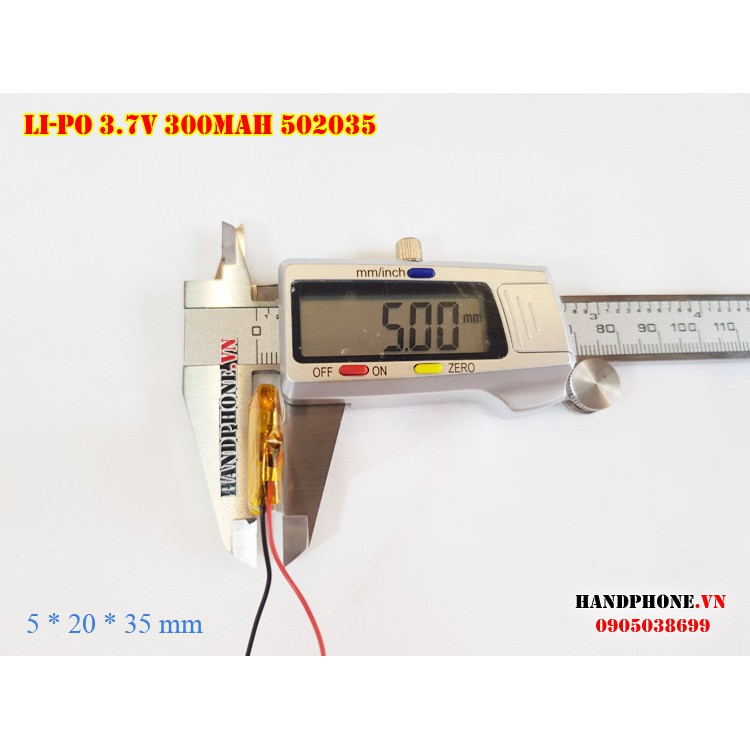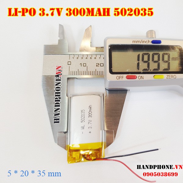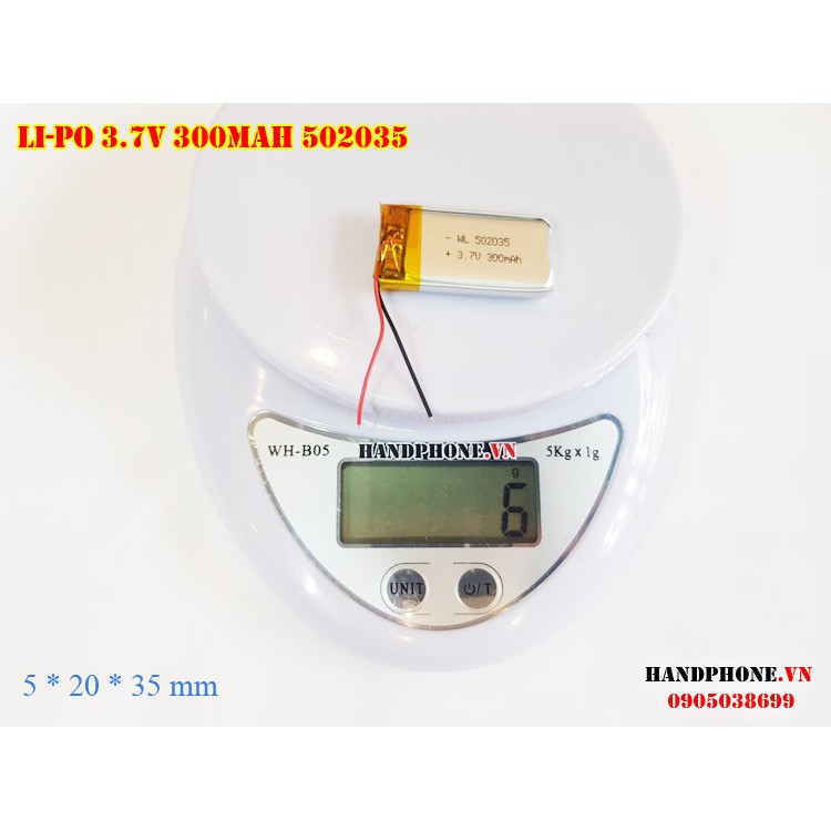 Pin Li-Po 3.7V 300mAh 502035 (Lithium Polyme) cho Camera hành trình, Định vị GPS, cân điện tử, loa bluetooth, máy ghi âm