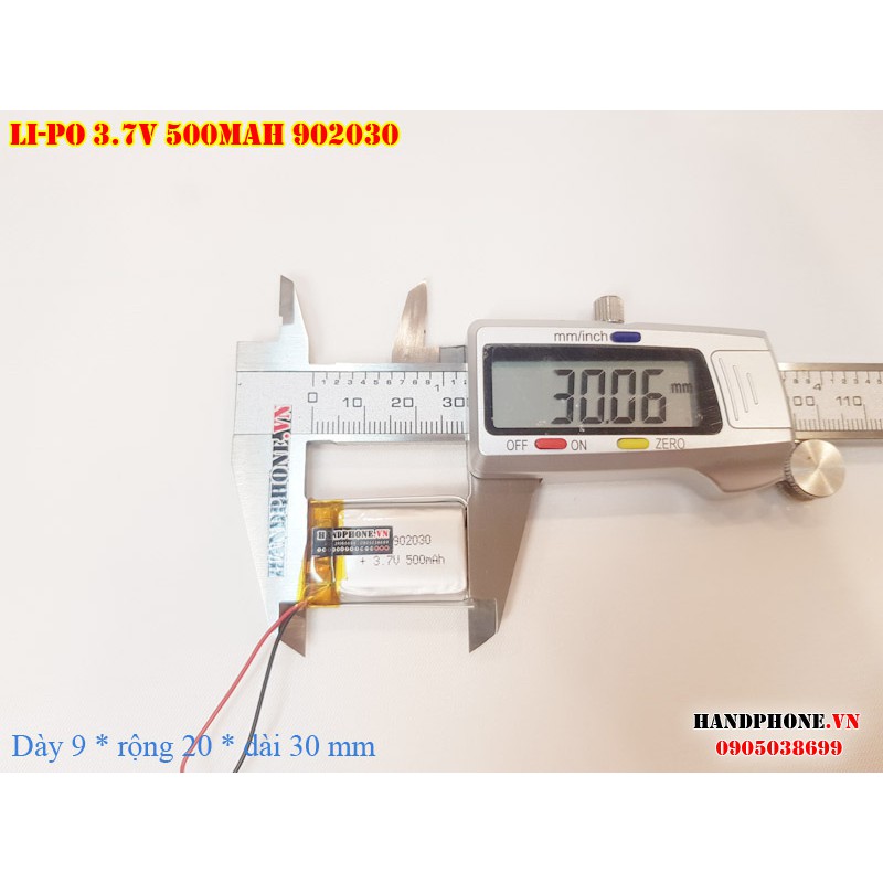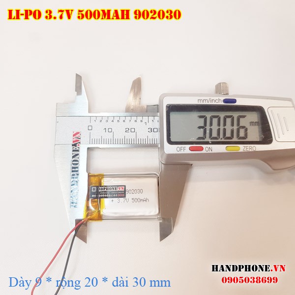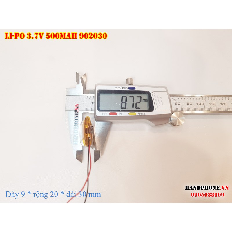 Pin Li-Po 3.7V 500mAh 902030 (Lithium Polyme) cho máy nghe nhạc, loa bluetooth, máy nội soi, cân điện tử, camera