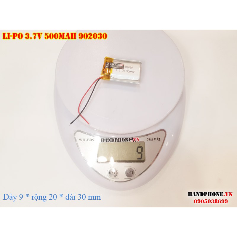 Điện Thoại & Phụ Kiện > Phụ kiện > Sạc dự phòng & Pin > Pin || Pin Li-Po 3.7V 500mAh 902030 (Lithium Polyme) cho máy nghe nhạc, loa bluetooth, máy nội soi, cân điện tử, cameraCòn hàng