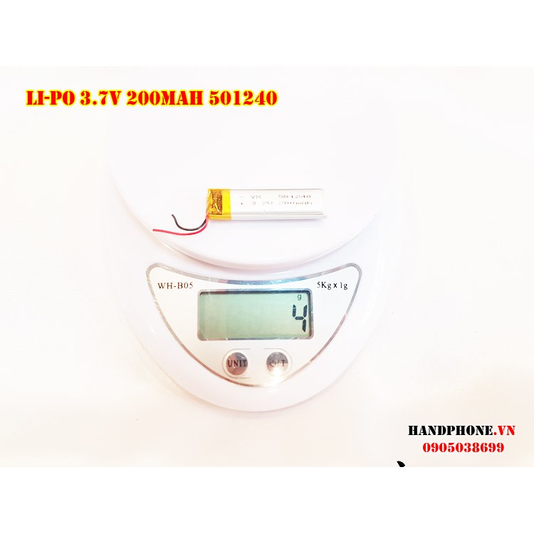 Pin Li-Po 3.7V 501240 200mah (Lithium Polyme) cho Tai Nghe Bluetooth, Máy Ghi Âm, Máy Nghe Nhạc, Mp3, Camera Hành Trình