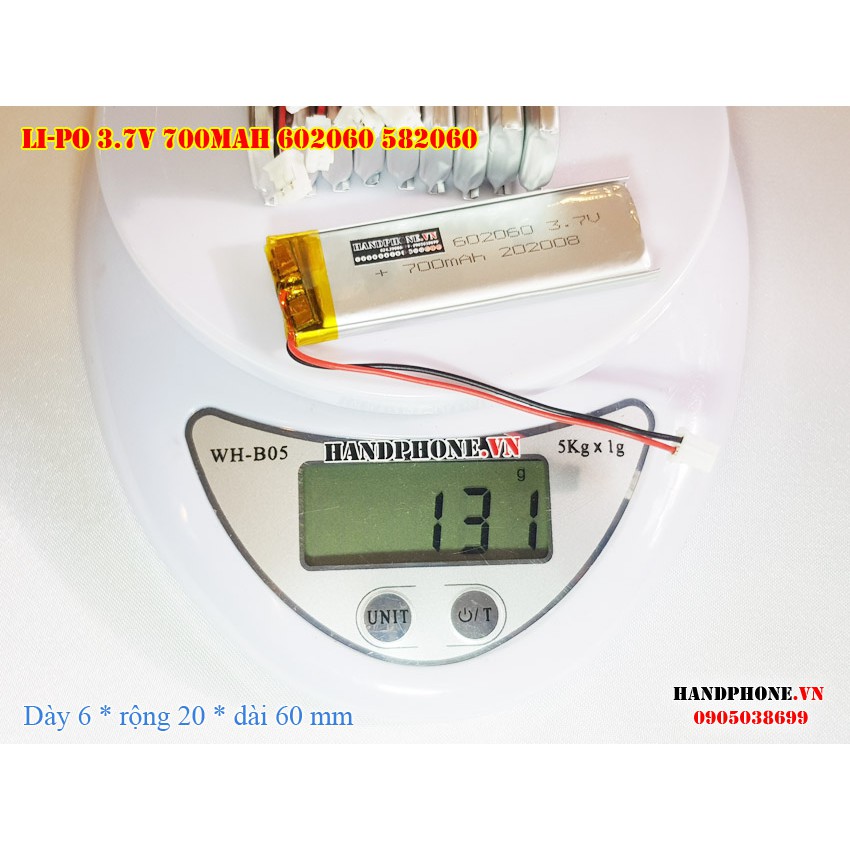 Thiết Bị Âm Thanh > Khác || Pin Li-Po 3.7V 700mA 602060 582060 (Lithium Polyme) cho loa bluetooth, máy nội soi, bàn phím bluetooth, camera, đồng hồCòn hàng