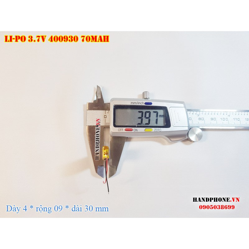 Pin Li-Po 3.7V 70mAh 400930 (Lithium Polymer) cho tai nghe Bluetooth, định vị GPS, máy ghi âm, máy nghe nhạc, khóa điện