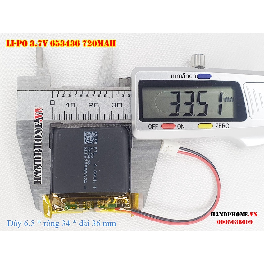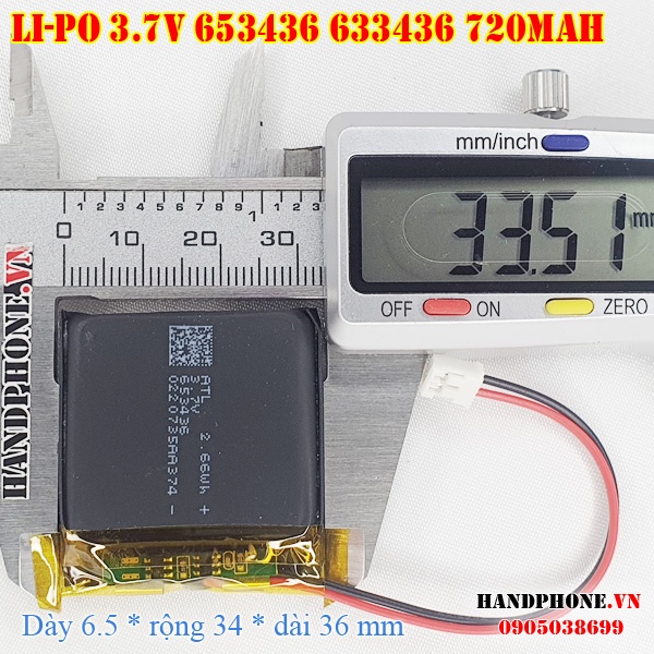 Pin Li-Po 3.7V 720mAh 653436 633436 (Lithium Polymer) cho Smartwatch, Đồng Hồ Thông Minh, Điện thoại, Camera Hành Trình