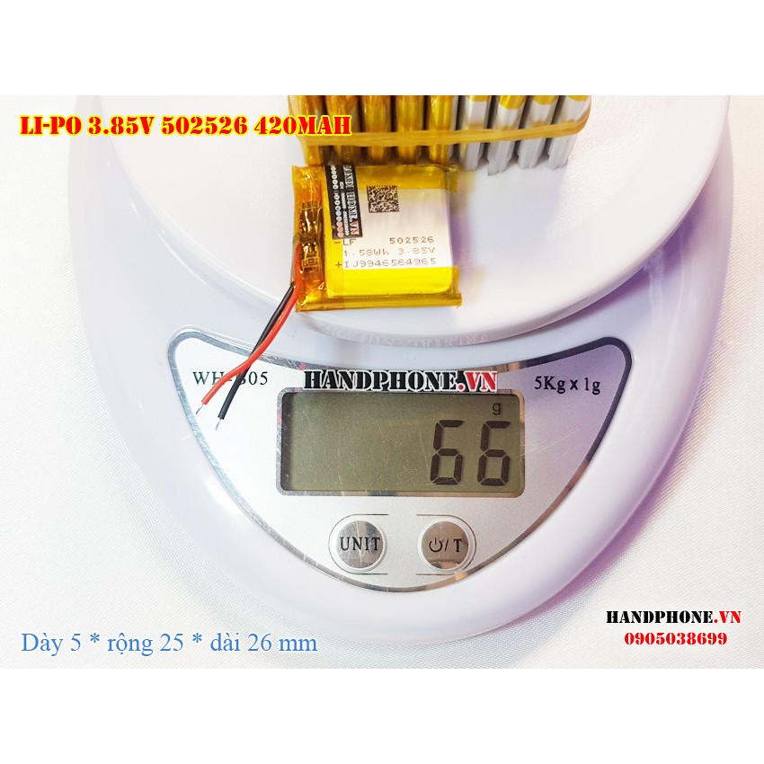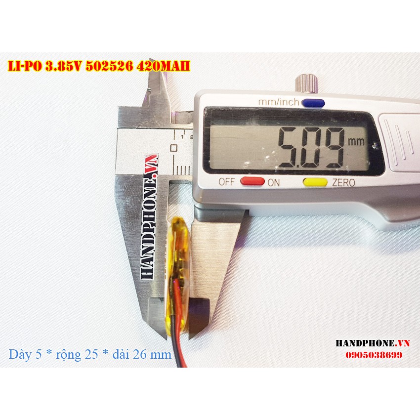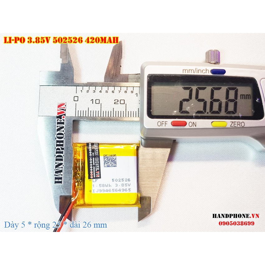 Pin Li-Po 3.85V 502526 502525 502626 420mAh (Lithium Polyme) cho Smartwatch, Camera Hành Trình, loa, tai nghe Bluetooth