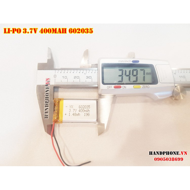 Pin Li-Po 380 / 400mah 602035 3.7V (Lithium Polymer) cho Camera hành trình, định vị GPS, đồng hồ thông minh