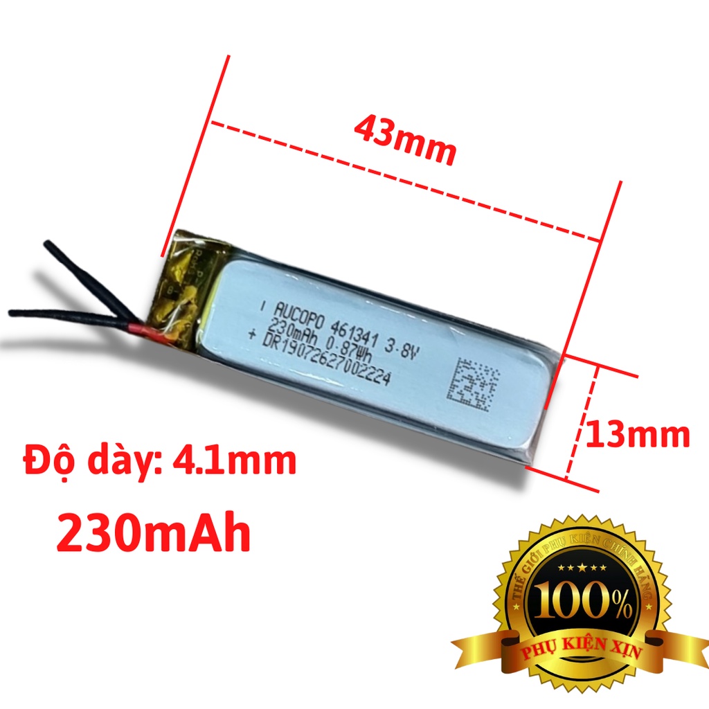 Pin LiPo 3.8v 230mAh Có Mạch Bảo Vệ Pin, Kích Thước 43mm x 13mm x 4.1mm Chính Hãng (Phù hợp DIY Tai Nghe, Đồ Chơi,...)- Kích thước: 43 x 13 x 4.1mm