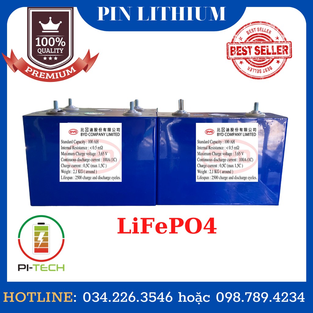 Pin Lithium 100Ah 3.2V hãng BYD đã hàn bulong mới 100%