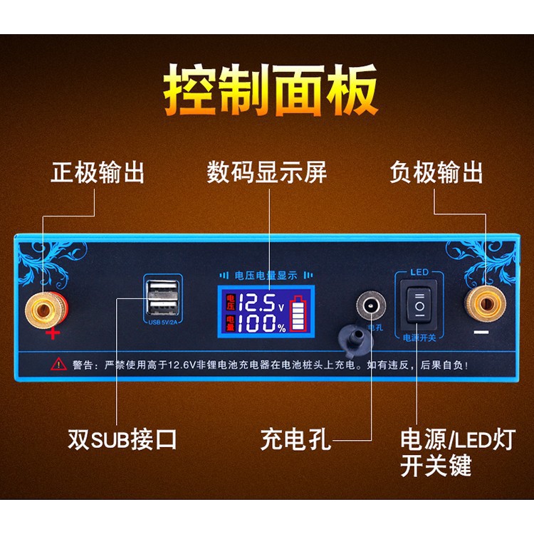 Tính năng: Có thể dùng để lưu trữ điện như 1 ắc quy thông thường, rất phù hợp với những khu vực hay mất điện (Có sẵn đèn led trên bình, dùng để sạc điện thoại từ cổng 5V). Tiện lợi khi đi píc níc, dùng như 1 ắc quy dự phòng cho ô tô trong trường hợp bình ô tô đã yếu.