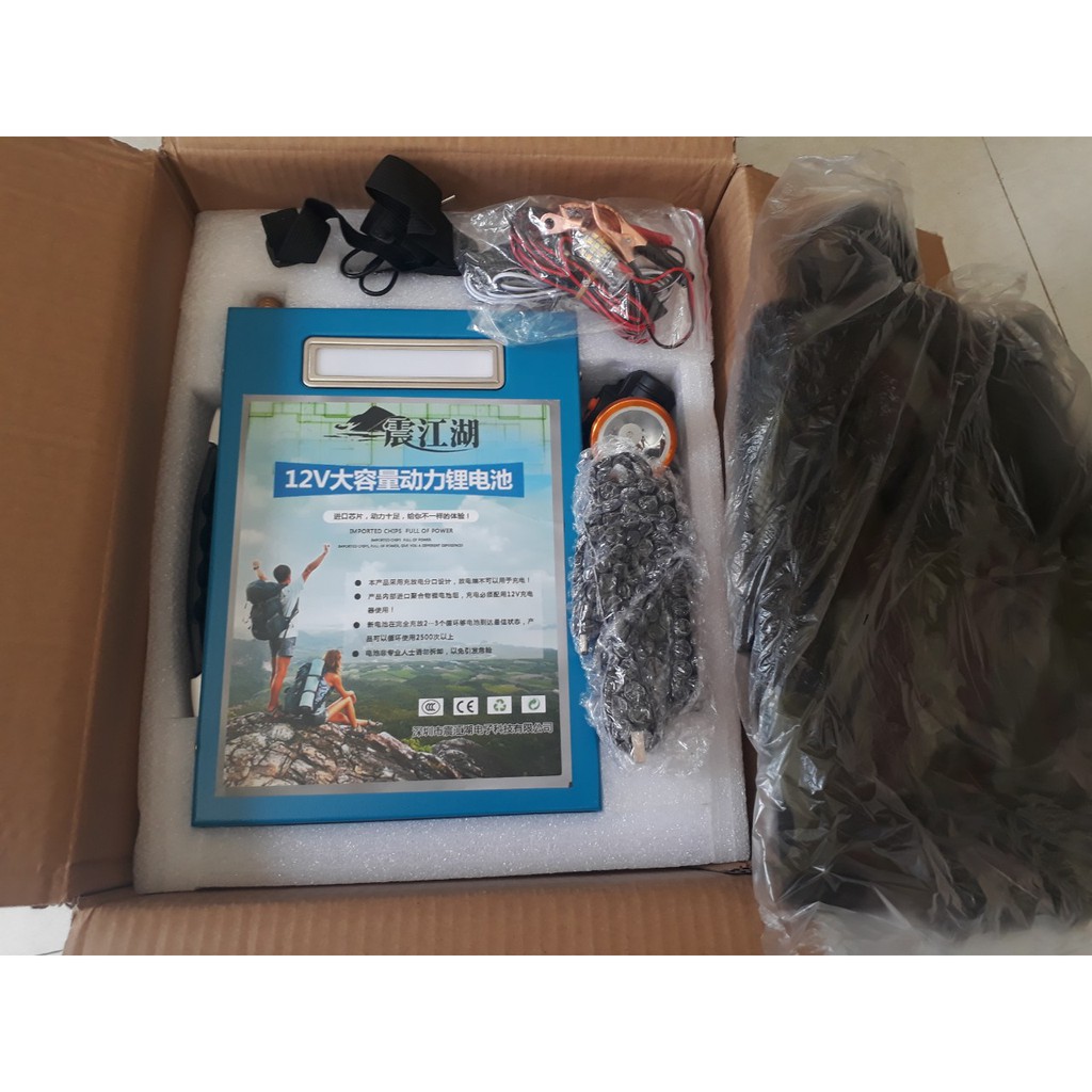 Bộ sản phẩm bao gồm: 1 bộ pin, 1 sạc, 1 đèn pin, 1 ba lô, Đèn led rời