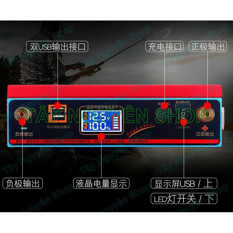 Tính năng: Có thể dùng để lưu trữ điện như 1 ắc quy thông thường, rất phù hợp với những khu vực hay mất điện (Có sẵn đèn led trên bình, dùng để sạc điện thoại từ cổng 5V). Tiện lợi khi đi píc níc, dùng như 1 ắc quy dự phòng cho ô tô trong trường hợp bình ô tô đã yếu.