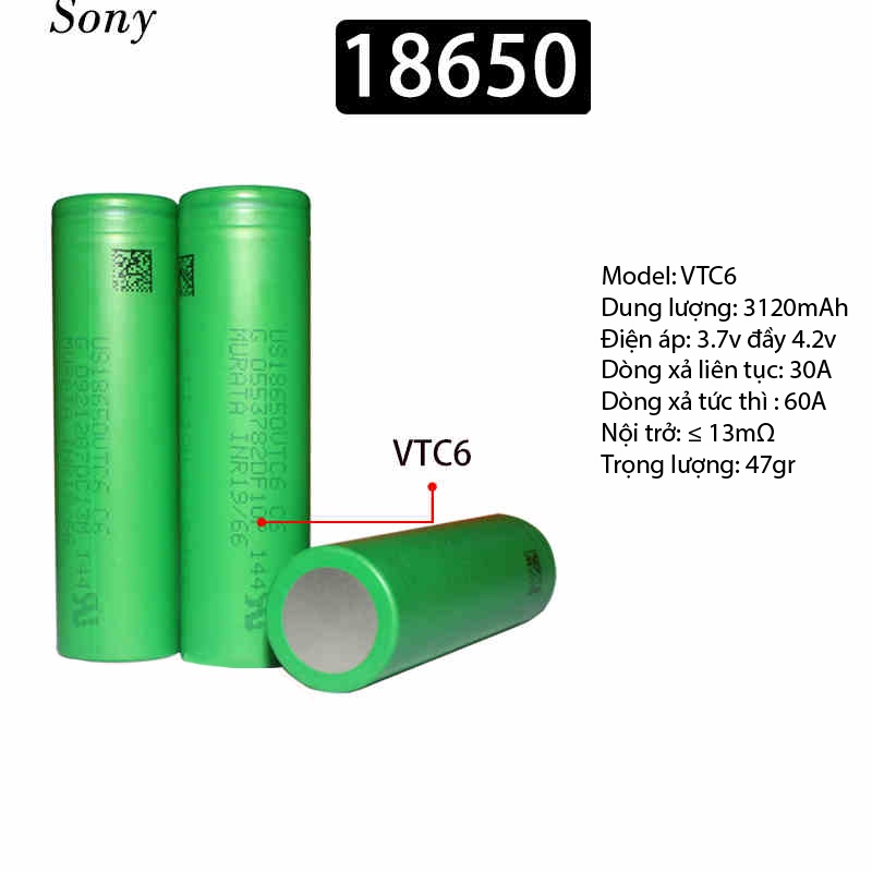 Giới thiệu Pin Lithium 18650 Sony VTC 6 Chính Hãng Dòng Xả Cao