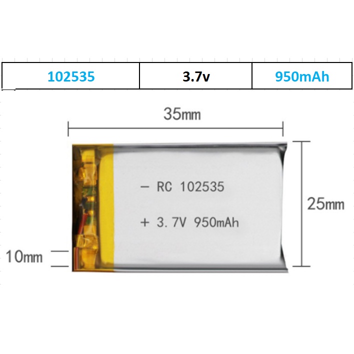 **********Tính Năng Sản Phẩm * *********Pin Lithium - Ion 3.7V 102535 950mah