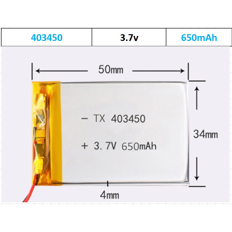 **********Tính Năng Sản Phẩm * *********Pin Lithium - Ion 3.7V 403450 650mah