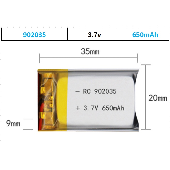 **********Tính Năng Sản Phẩm * *********Pin Lithium - Ion 3.7V 902035 650mah