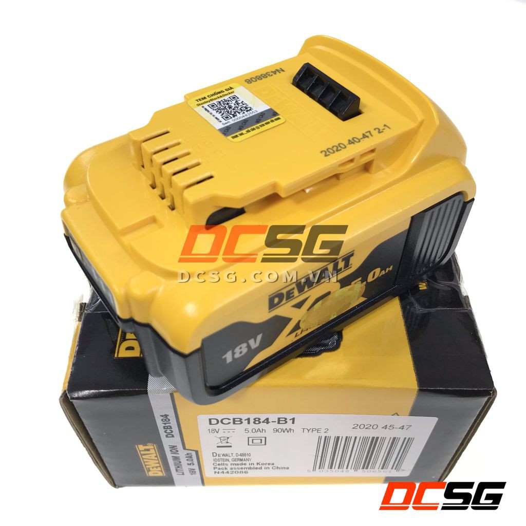 - Pin LITHIUM ION 18V 5.0 Ah Dewalt DCB184-B1+ Loại pin: LITHIUM ION