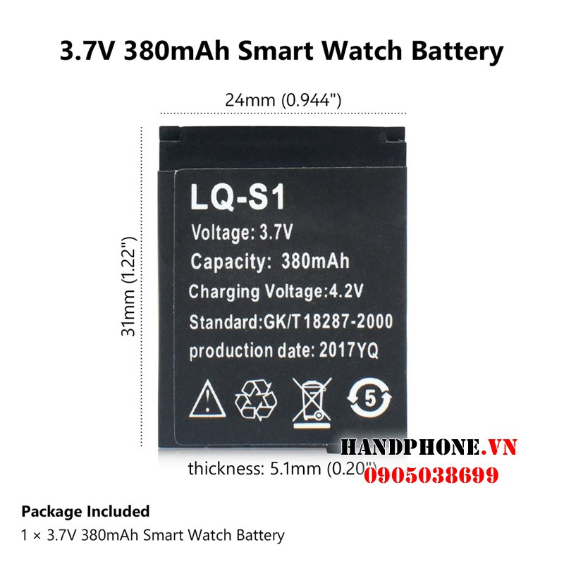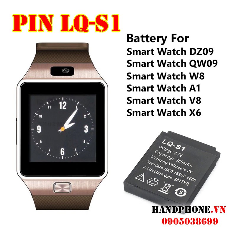 - Pin Đồng Hồ Thông Minh LQ-S1 dùng để thay thế cho tất cả các dòng Smartwatch như DZ09, A1, GV08, GV18, Q18, U8, V8, X6, Y1, Z60, A8L, A8Li, GM08, Apwatch, GM08, A9L, W88...