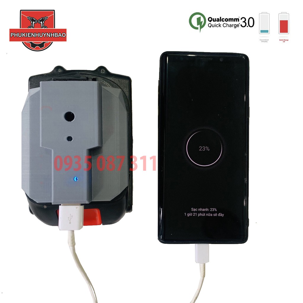 CHÚ Ý:SẢN PHẨM CHỈ ĐẾ CHUYỂN,KHÔNG BAO GỒM PIN,PIN ĐỂ MINH HỌA CHÂN ĐẾ MAKITAĐế Chuyển Pin Makita Ra Cổng USB Sạc Nhanh Quick Charge 3.0