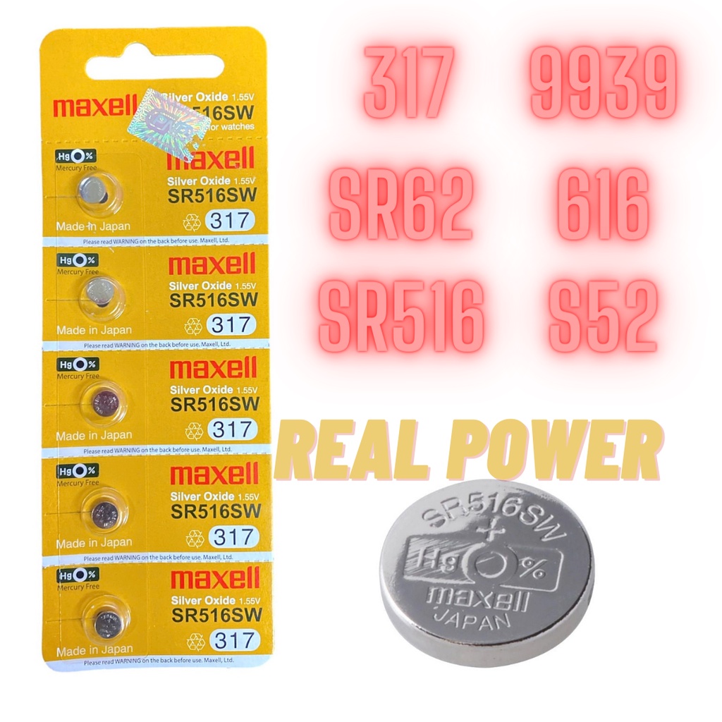 Pin Maxell SR516SW / 317 / 616 / 9939 / 280-58 / S52 / SR516 / SR62 / SB-AR Silver Oxide 1.55Volt (Made in Japan)
