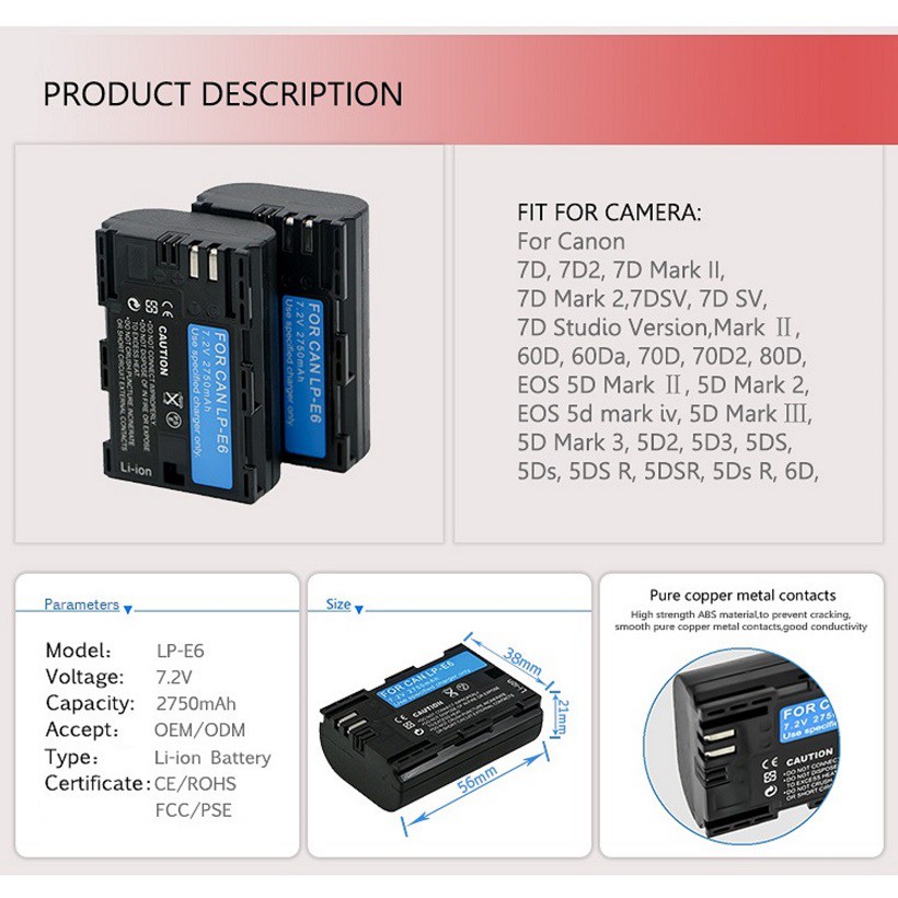 Giới thiệu Pin Máy Ảnh Canon LP-E6 2750mAh Cho Canon 60D, 70D, 6D, 7D, 5D MARK II, 5D MARK III, 7D II
