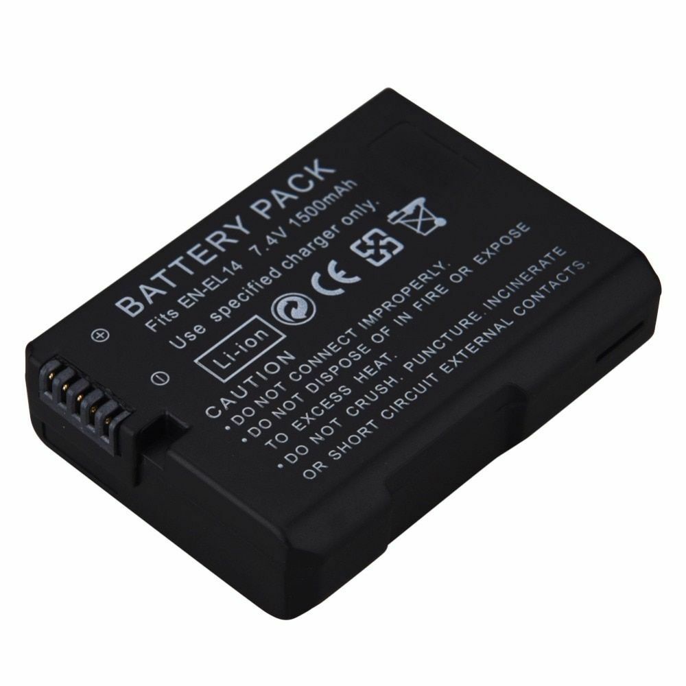 Pin máy ảnh EN-EL14 dành cho máy ảnh Nikon D3100, D3200, D5100, D5200, P7000, P7100, D5300 được sản xuất đạt tiêu chuẩn về pin dành cho máy ảnh nikon. Pin máy ảnh đảm bảo tiêu chuẩn sẽ giúp cho máy ảnh của bạn hoạt động tốt, tăng tuổi thọ máy ảnh, đảm bảo an toàn trong thời gian sử dụng pin.