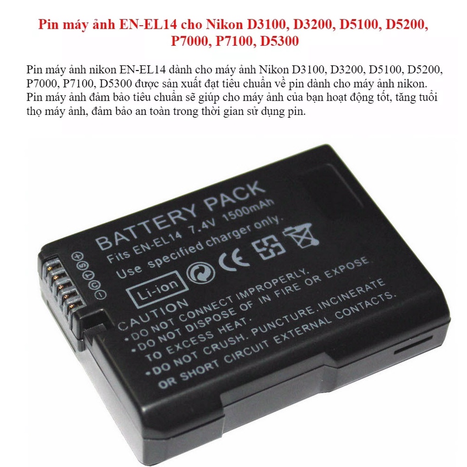 PIN DUNG LƯỢNG CAO CHO MÁY ẢNH NIKONEN-EL14 / 1500mAhNikon D3100 D3200 D5100 D5200 P7000 P7100 D5300