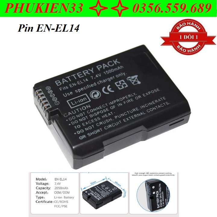 Pin máy ảnh EN-EL14 1500mAh cho Nikon D3100 D3200 D5100 D5200 P7000 P7100 D5300 cao cấp