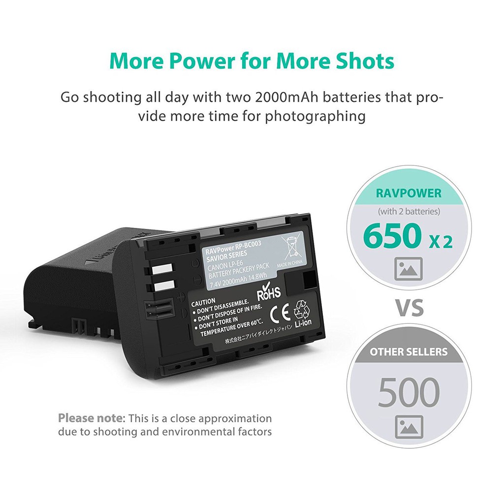 - Bộ sản phẩm bao gồm : 1 viên pin LP-E6N thương hiệu Ravpower
