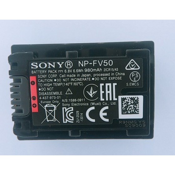 - Sony NP-FV50 dùng cho các máy quay sau: Sony DCR- SR68E; SX83E; SX63E; SX43E; CX350E; CX150E