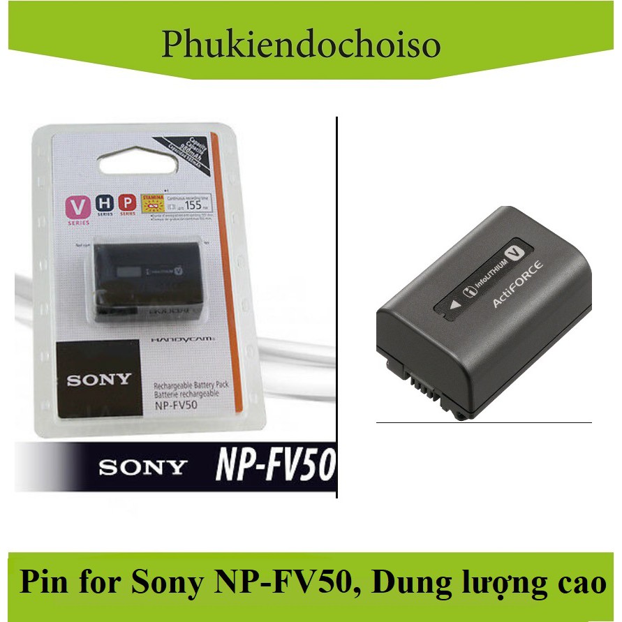 Bộ sản phẩm gồm: 1 pin máy ảnh Sony NP-FV50Pin thay thế pin máy ảnh Sony NP-FV50, Dung lượng cao