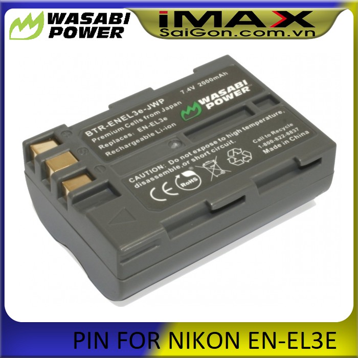 Pin máy ảnh wasabi for nikon EN-EL3EBộ pin sạc Li-ion cho Nikon D50, D70, D70S, D80, D90, D100, D200, D300, D300S, D700