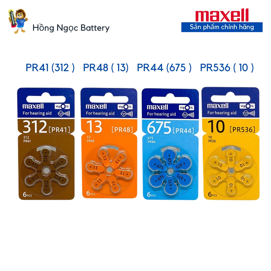 Giới thiệu Pin máy trợ thính Maxell PR41 ( pin 312 ) / PR44 ( pin 675 ) / PR48 ( Pin 13 ) / PR536 ( Pin 10 ) 1,45V Hàng chính hãng