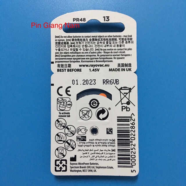 Thôn Tin Sản Phẩm:Tên sản phẩm: Pin Rayovac size 13