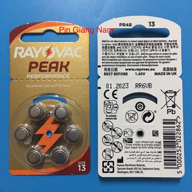 Pin máy trợ thính Rayovac 13 PR48 AG5 vỉ 6 viên