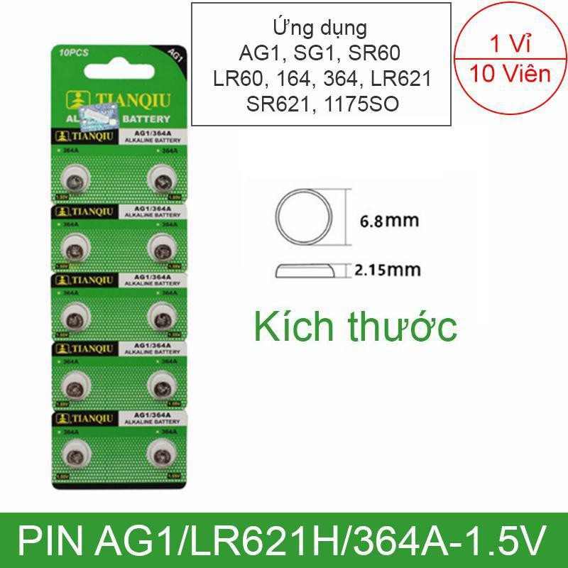 PIN Nhỏ Đầu Đũa LR621H AG1 364A SG1 SR60 LR60 164 364 LR621 SR621 1175SO TIANQIU 1 Vỉ 10 Viên