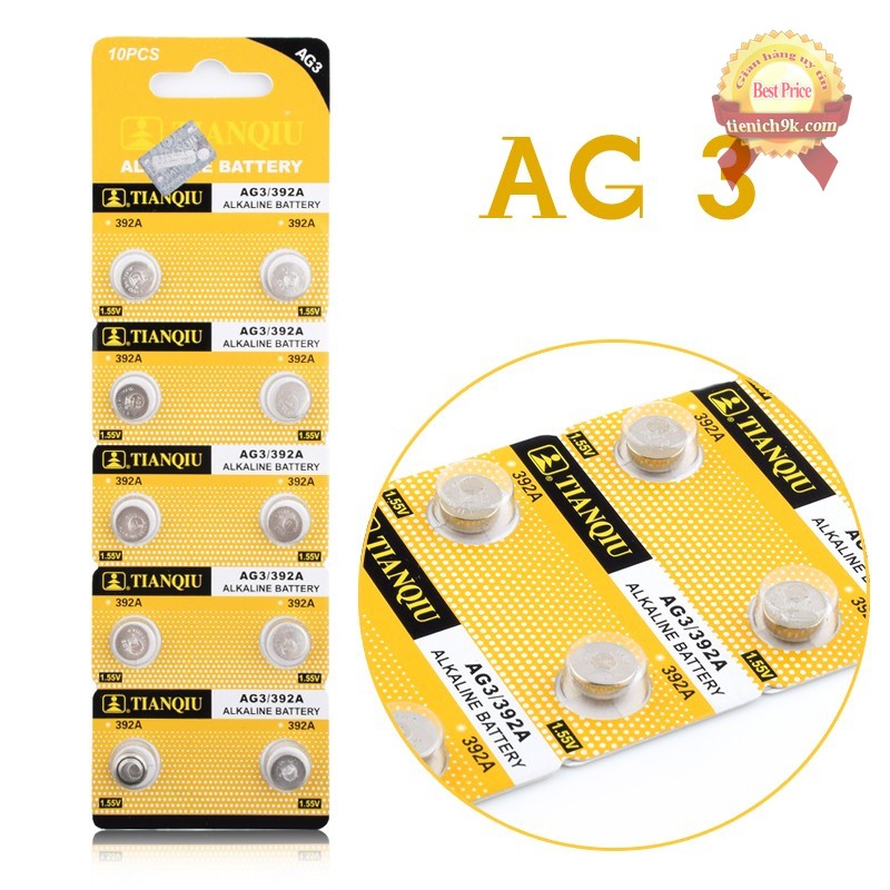 Điện Thoại & Phụ Kiện > Phụ kiện > Sạc dự phòng & Pin > Pin || Pin Nút AG3 / 392A / LR41 / L736 / 192 TianQiuCòn hàng