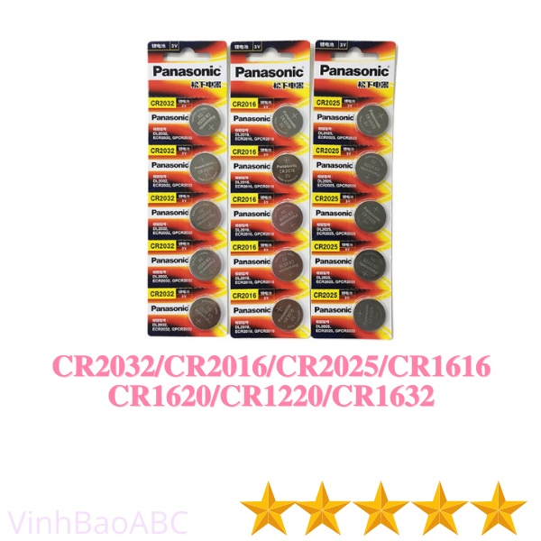 [Pin PANASONIC] Vỉ 5 Viên CR2032 / CR2025 / CR2016 / CR1632 / CR1220 / CR1620 / CR1616 Pin 3V Lithium Made In Indo