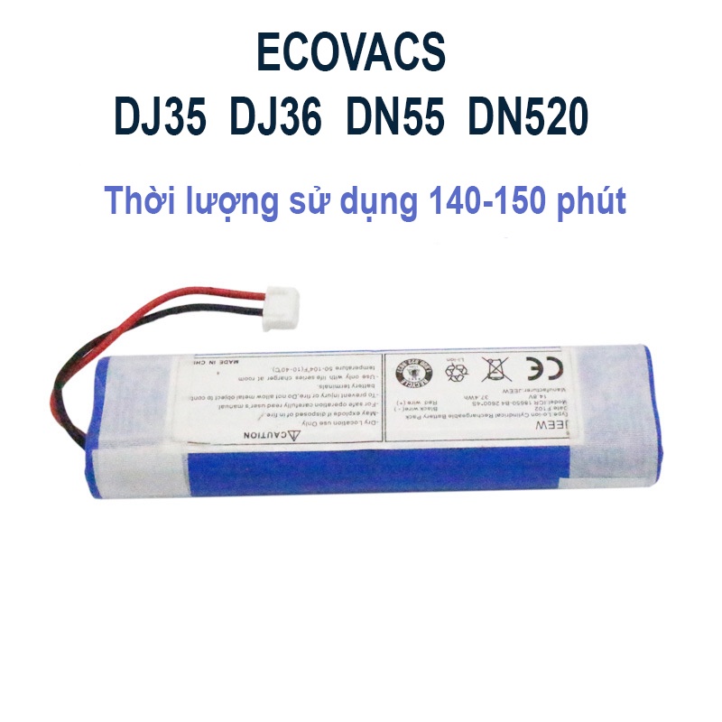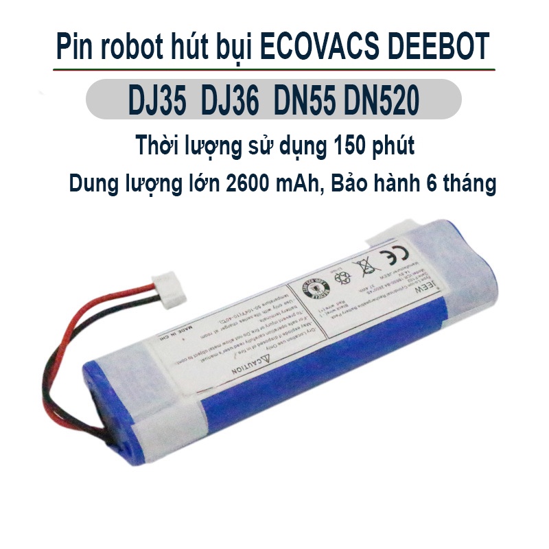 Pin robot hút bụi Ecovacs sử dụng tương thích với các dòng Ecovacs DJ35 DJ36 DJ65 DN55 DN58 DN520 DK33 DK35 DK36Dung lượng pin lớn 2600 mAh cho thời lượng sử dụng 140-150 phút