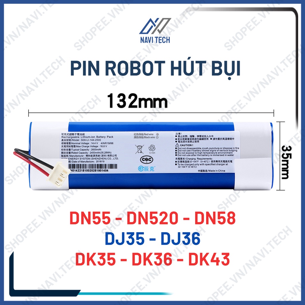 Pin robot hút bụi Ecovacs Deebot Dj35,Dj36, Dn55, DN58, Dn520, Dk33, Dk35, Dk36, DJ65, N8, T5 Neo- Loại pin: Lithium công nghệ mới